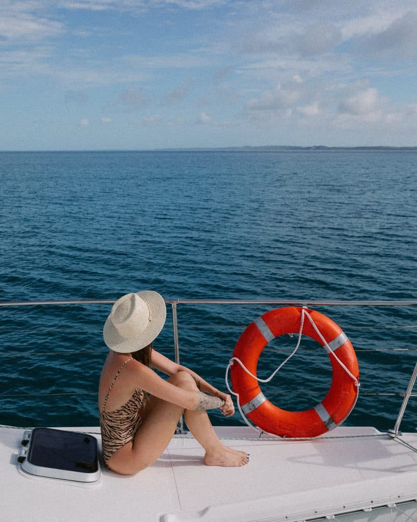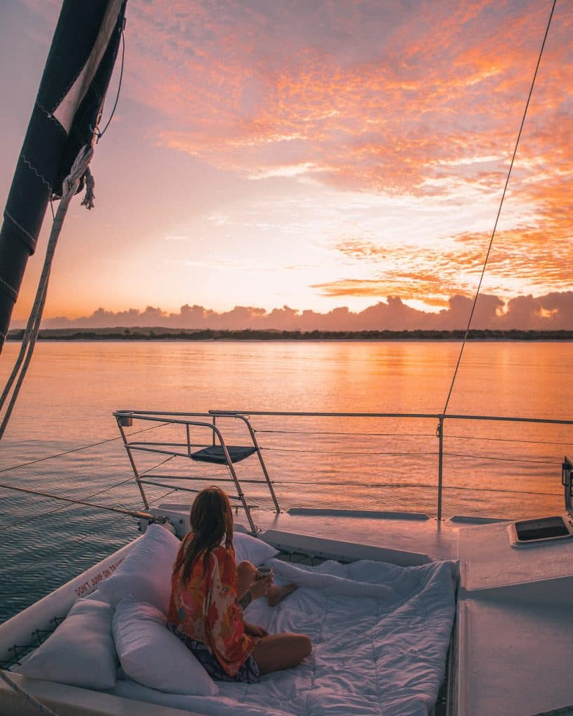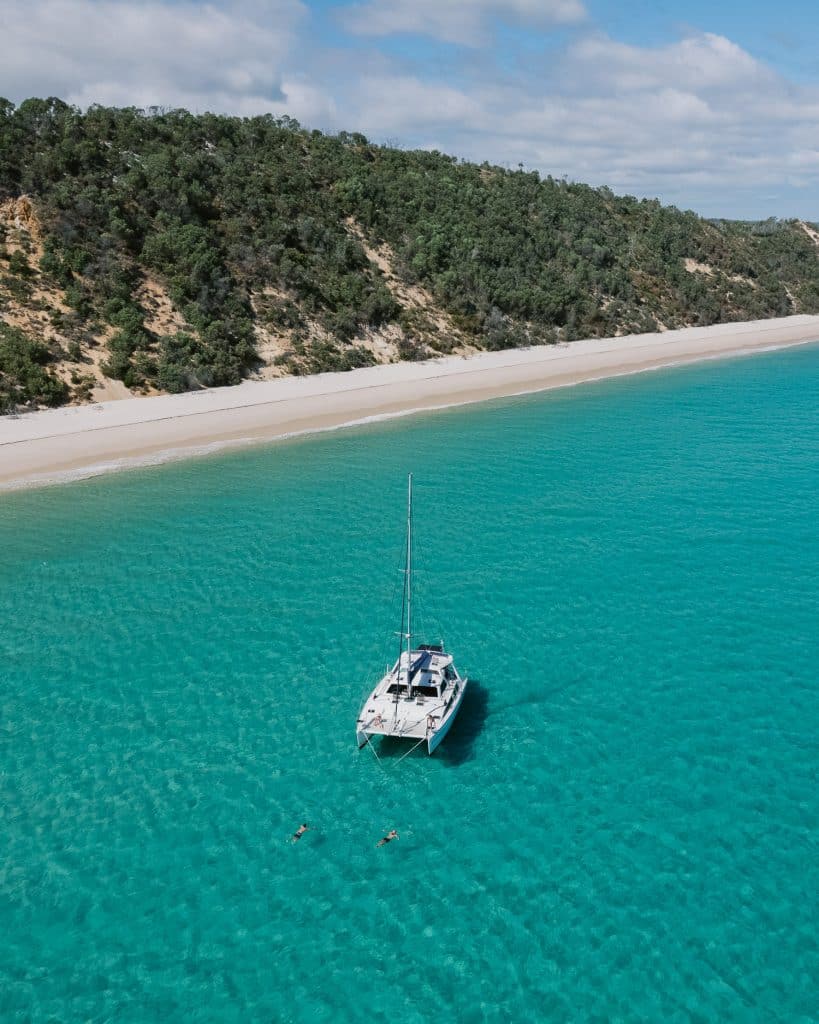 You can hire a yacht at Fraser Island Boat Charters or Sweet Escape Yacht Charters located in Hervey Bay on the beautiful Fraser Coast. I’ve only been bareboating with FIBC but I’ve heard only good things about Sweet Escape.