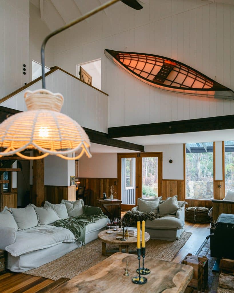 Perched above the waters of The Great Lake, this off-grid cabin has a captivating story to tell. Once a humble fisherman’s shack, it has been thoughtfully transformed into a sanctuary. Nestled in Tasmania’s wild Central Highlands, the crisp air and starry nights create a serene atmosphere. Life here slows to a gentle rhythm and if you visit during the right time of year, you might even wake up to snowfall. This is the kind of place where you can truly switch off, sink into the quiet and let the landscape work its magic. Camp Nowhere isn’t called nowhere for no reason, it truly is in the middle of nowhere, and that’s one of my favourite things about this Airbnb.