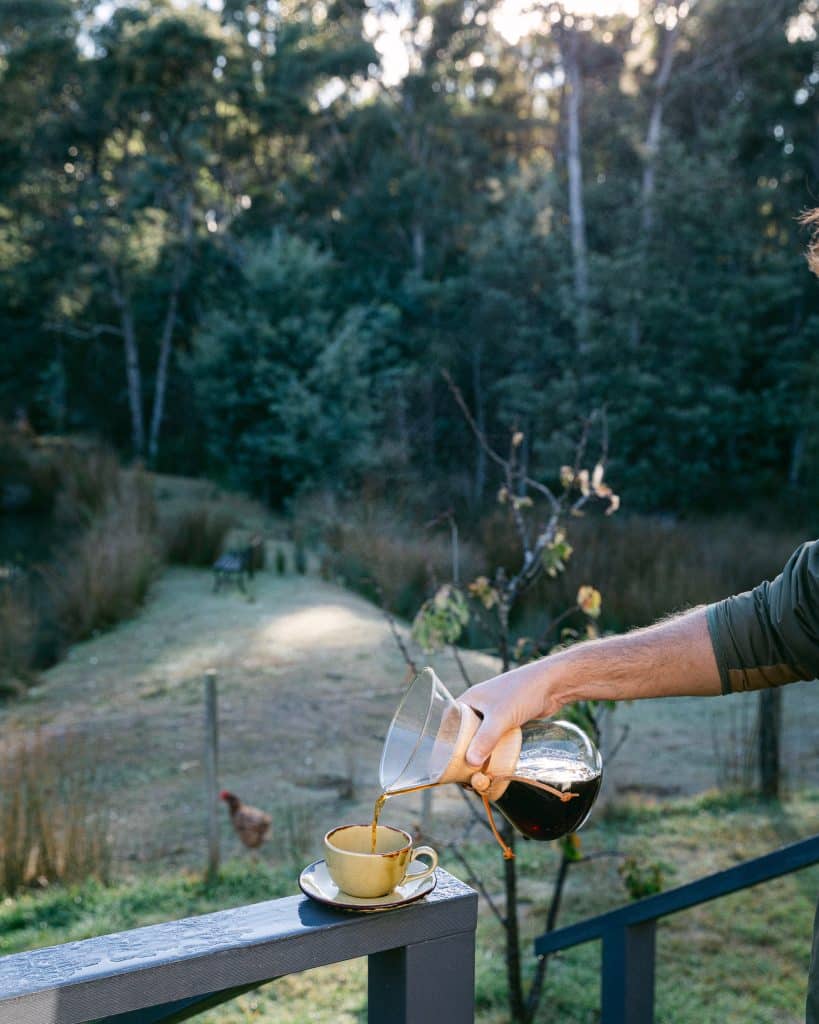 The perfect place to stay put, relax, watch the stars by night or ducks, bunnies, birds & wallabies during the day. The Cottage is nestled in the serenity of the luscious Tasmanian bush but is still conveniently close to many shops and restaurants. When we arrived, we were greeted by the friendliest chickens. I’ve never seen chickens run so quick, they were eager to see us. The living space has beautiful bush and lake views and a wood fire to keep it cozy inside. I loved watching the two resident ducks and I was on a look out for the platypus that has been spotted in the past. Unfortunately we weren’t lucky enough to see it. Naivasha Cottage is the perfect place to slow down and immerse yourself in nature.
