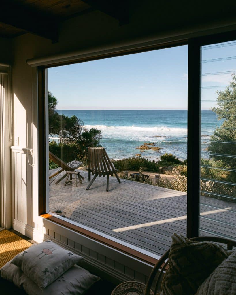 an entire beach shack located in a sleepy town on the east coast of Tasmania where you forget the world, disconnect, slow down and get lost in the ocean views. I found myself warming up near the outdoor fire pit staring out to sea spotting seals and dolphins. If you visit Whale Song at the right season, you might catch a glimpse of passing whales.